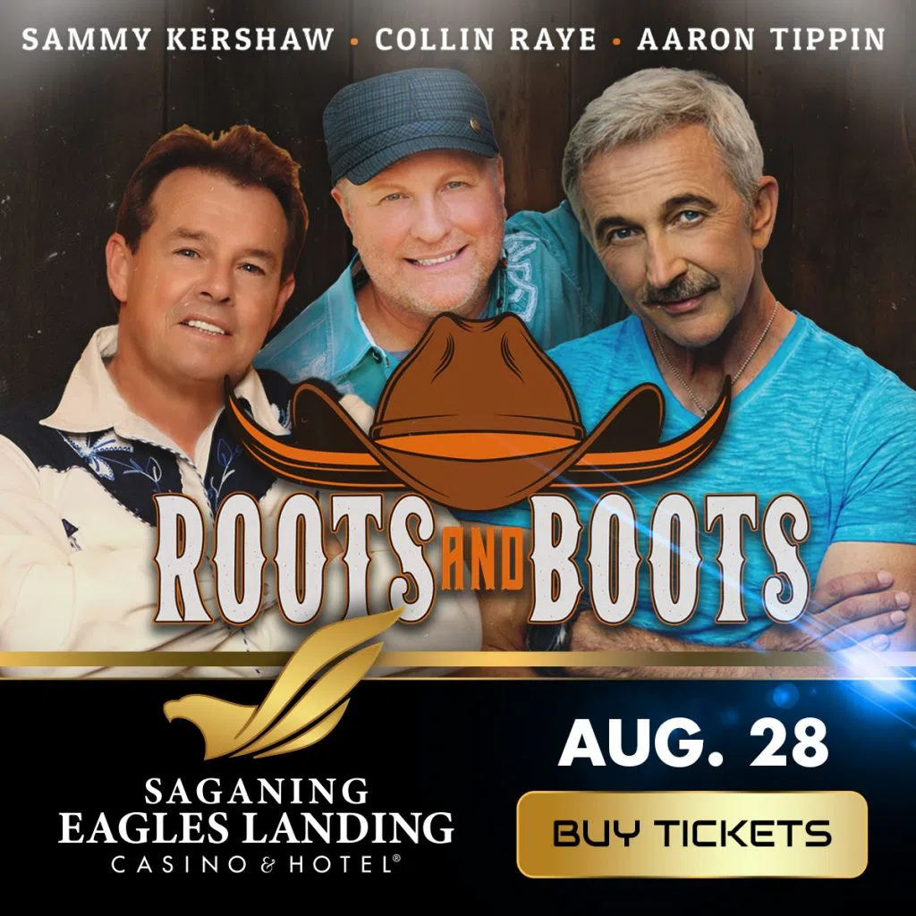 Get in on the parking lot party of the summer with Roots and Boots with Sammy Kershaw, Collin Raye & Aaron Tippin at Saganing Eagles Landing Casino & Hotel on August 28th! Listen all this week with Kincaid & Dallas for a chance to win on B95.1!